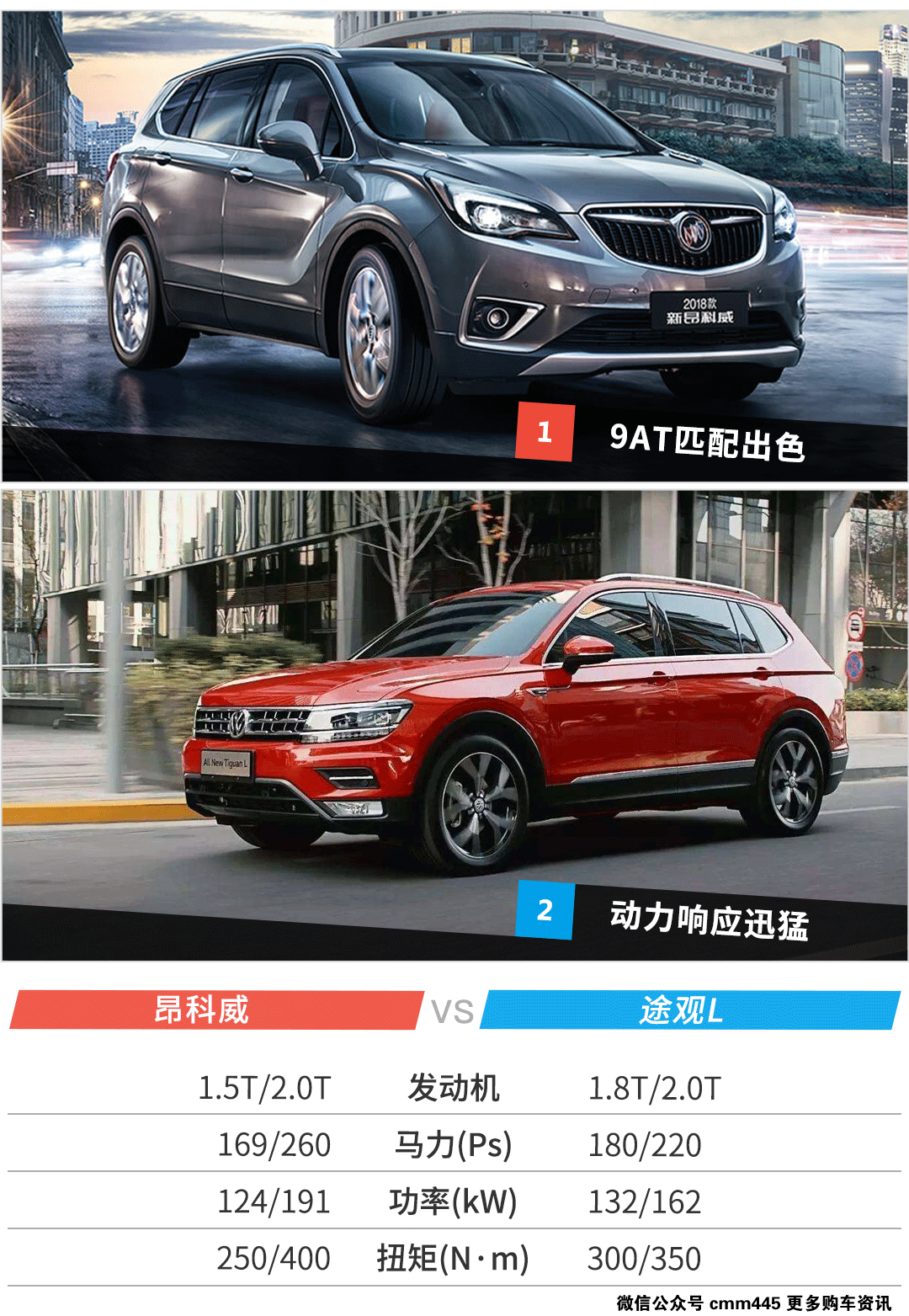 总结:新款昂科威的行驶品质依然不错,而且2.0T车型也更加好开了,9AT变速箱的加入让昂科威的竞争力提升不少。在本次对比中,昂科威的内饰质感还有行驶舒适性更有优势。而在操控性和动力性能方面途观L更占优势。