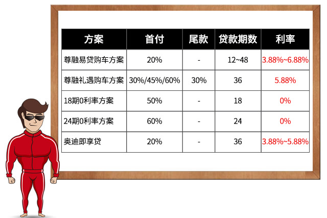 购车分期贷款所带来的高额利息,总是买车需要面对的最后一道难题。但奥迪就要让你购车再无后顾自忧,“三十而立 以礼相爱”的金融政策提供了多种优惠方案。
