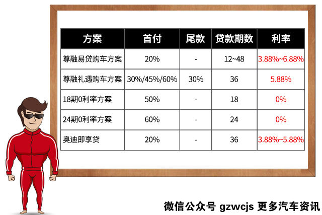 以文中主角奥迪Q5为例,首付8万元起,或享月供低至1888元,便能轻松开回家;首付50%起,更能享受18期0利率的优惠方案。提一辆奥迪新车回家,还能留下更多资金周转,可是人生一大乐事!