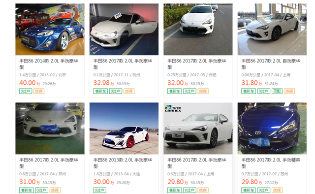 BRZ/86是改装的重灾区,如果改动得多的肯定没有素车这么保值,如果是准新车的素车,现在在二手车市场卖得肯定要比新车贵,大概贵一到两万,二手车比新车卖得还贵,而且还不是超跑,真的很少见。