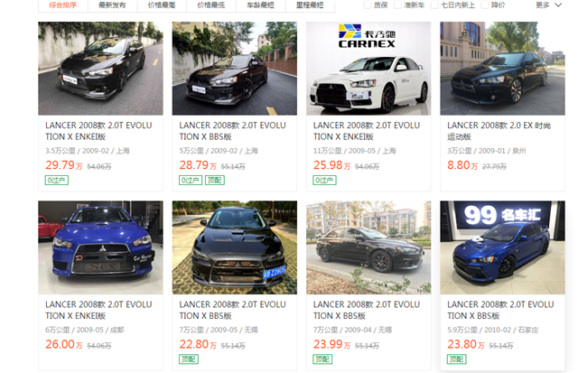 所以,在二手车市场上,成为绝唱的EVO 10并没有被追捧,价格也是不咋地。一台09年上牌的EVO 10最低价格可以去到20万。