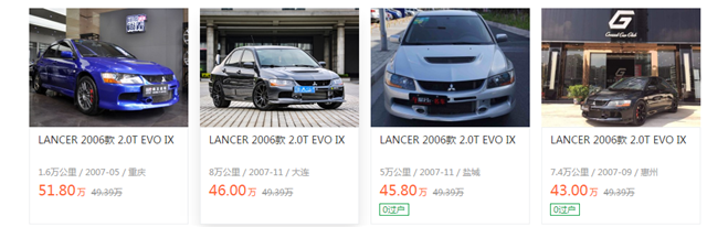 而EVO 9就不同了,2007年的车,开了快十万公里,还能卖个40多万,仅仅只比新车价格便宜个两三万。而且这样的价格,已经坚挺了很多年,我估计还会继续坚挺,直到有价无车那一年。