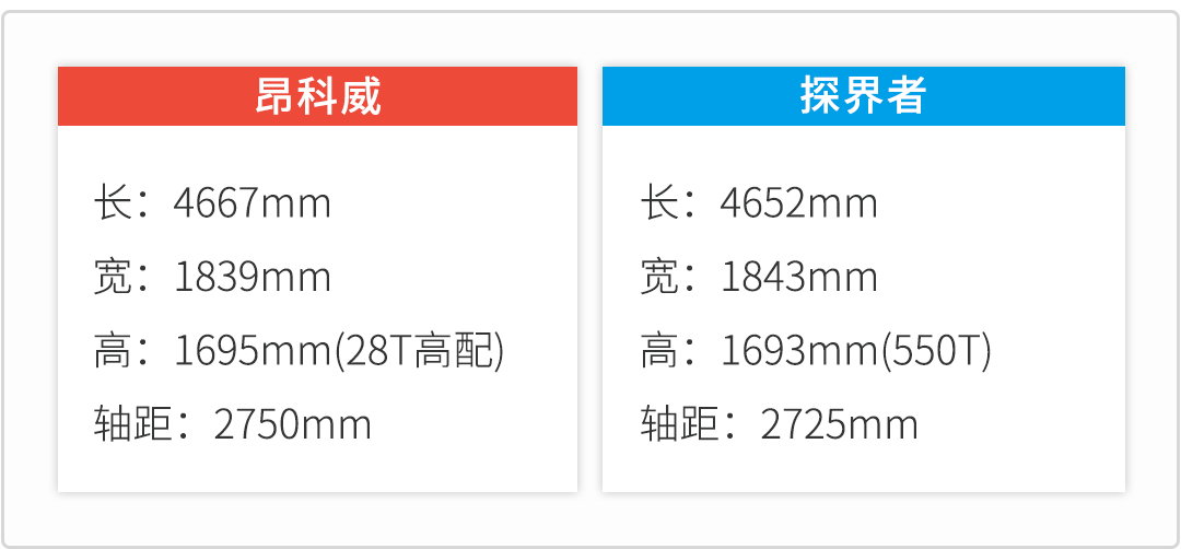昂科威和探界者同为中型SUV的定位,所以在车身尺寸方面并没太大差别,昂科威的轴距更胜一筹,不过实际的乘坐体验来看,两车的车内空间区别还真不大,相信大部分消费者都能接受。