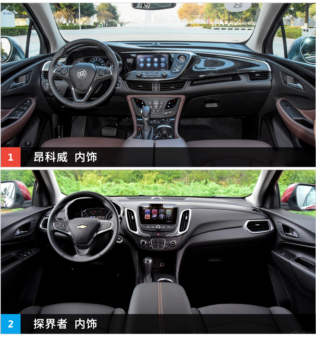 内饰的设计相比之下,教授更喜欢昂科威的内饰,采用拼色设计拥有不错的视觉冲击感,同时一些面板的用材上也独显高档豪华感。探界者的设计主要以黑色基调为主,镀铬为辅,简约风格。当然了,我们不能忽略了两车的售价,探界者的顶配车型最多就能买到昂科威的2.0T低配车型,内饰的用材方面就能很好诠释这一点了。