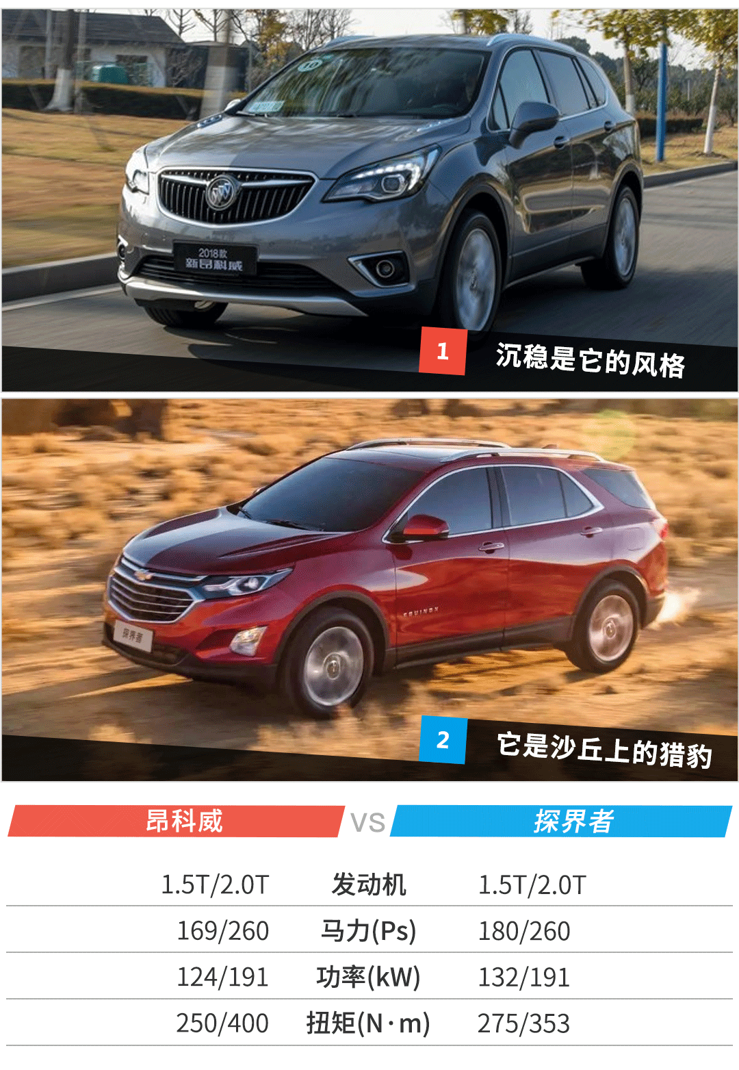 两车的选择上,各取所需。如果你注重外在和内在,更高档的昂科威会是你的选择;如果你的预算紧张,只想要一台体面、空间够大的家用SUV,1.5T的探界者足够实惠;如果你追求个性和驾驶乐趣,教授更建议你入手探界者RS,黑武士的外观足够吸睛,发动机调校也非常激进。两款车都值得去4S店去体验一番,或许它就是你的“梦想座驾”。