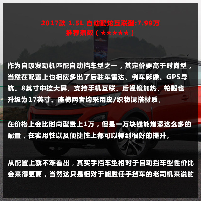 2017款 1.5L 自动酷炫互联型:7.99万