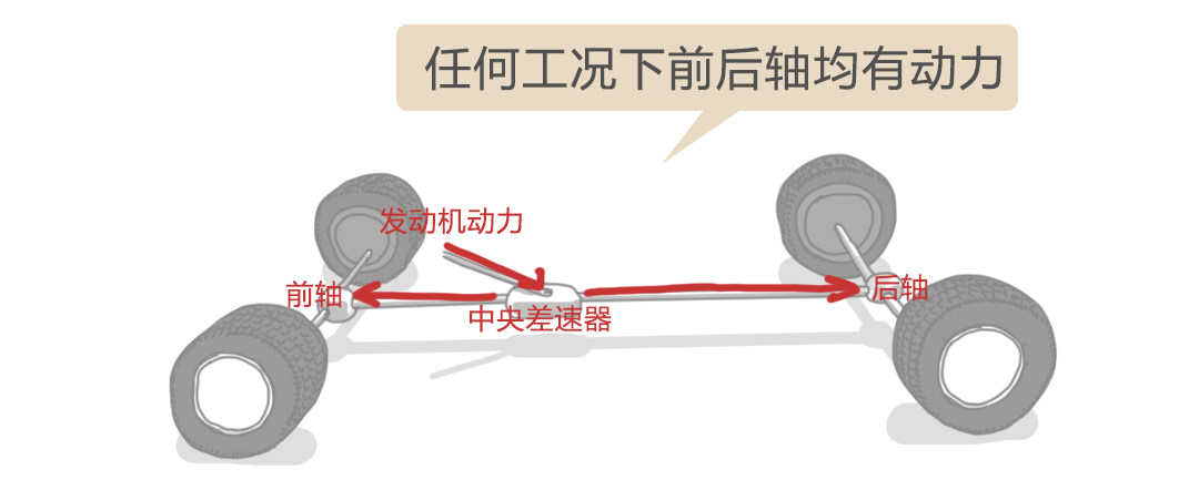 前后轴在四驱模式时属于硬连接