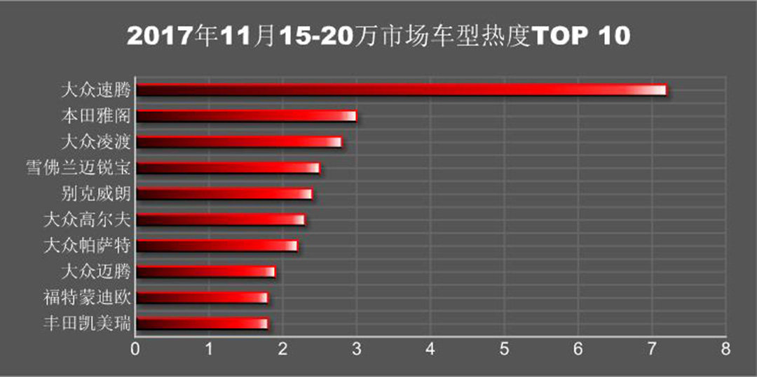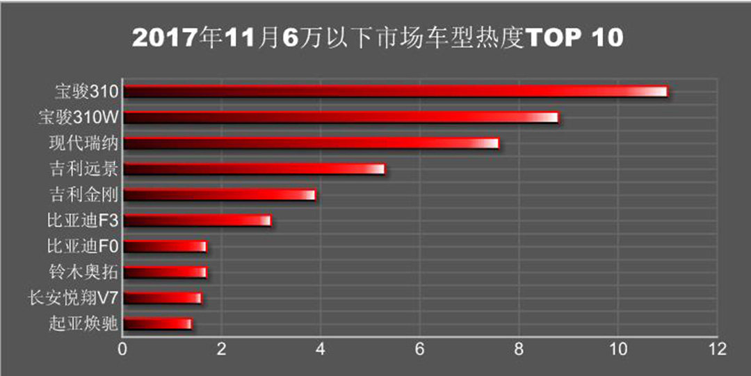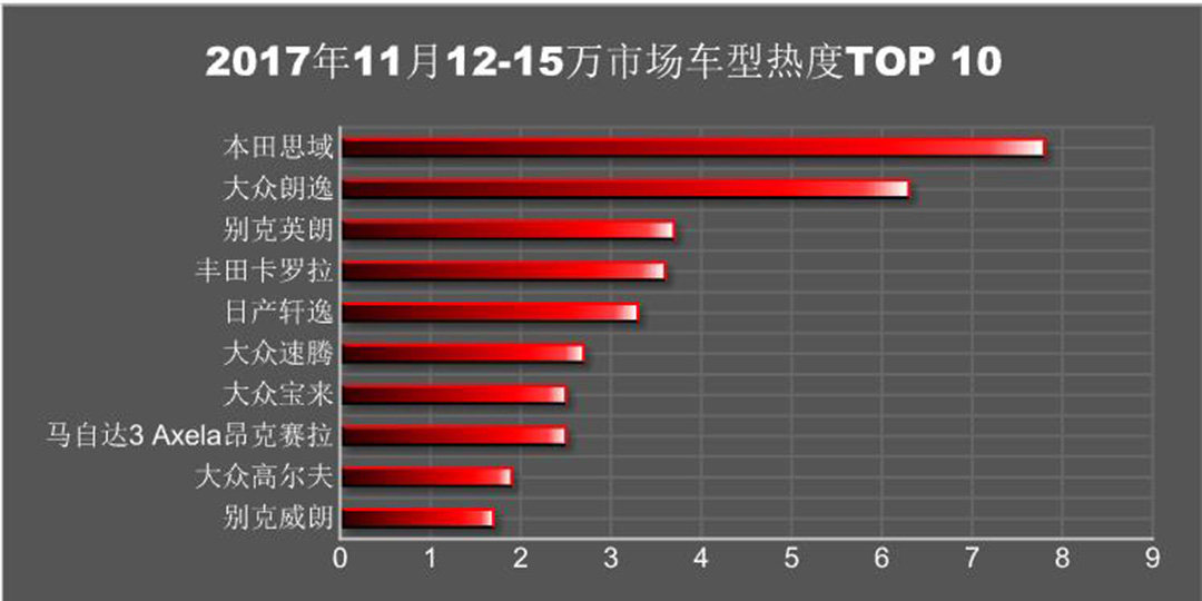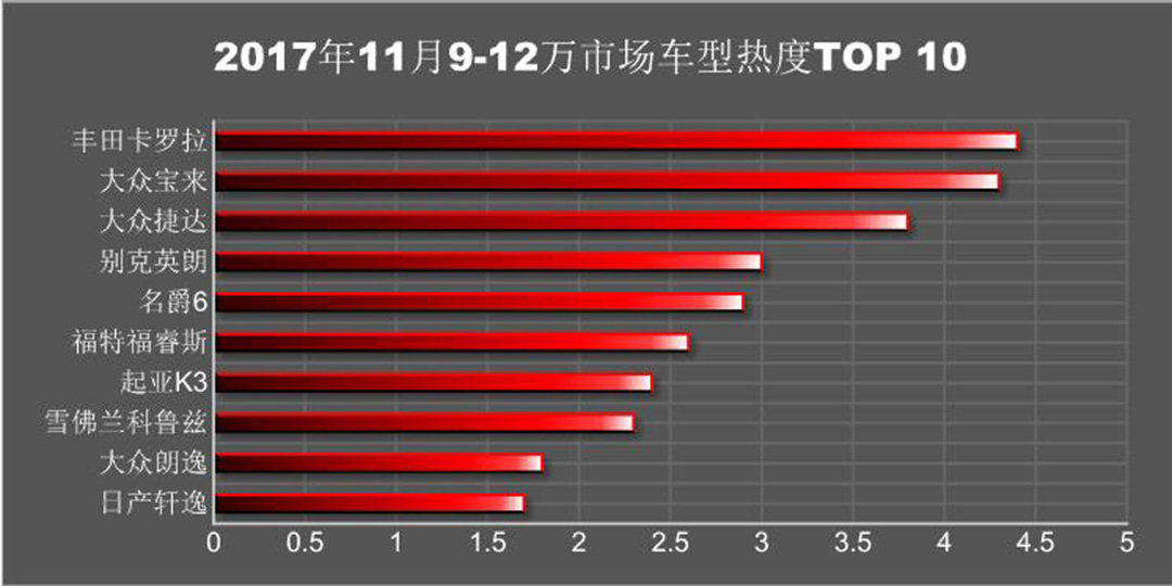 转眼间又到了一年的年底,这一年的结束意味着小排量车型购置税7.5折的政策即将结束,所以在近两个月里面汽车经销商大力宣传而消费者则是赶紧看车买车,争取享受最后的购置税优惠。那么在11月里面不同价位上,哪一款车型的热度更高呢?