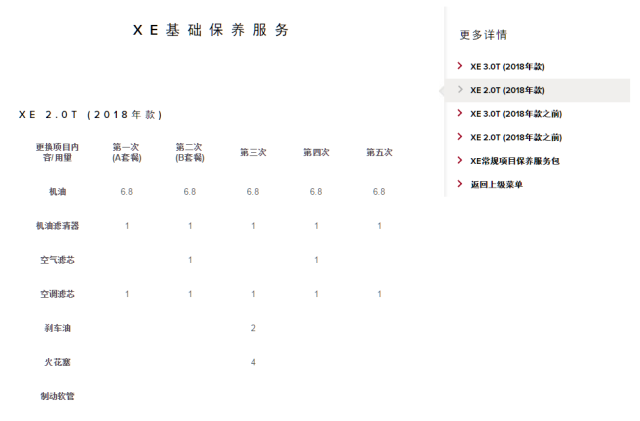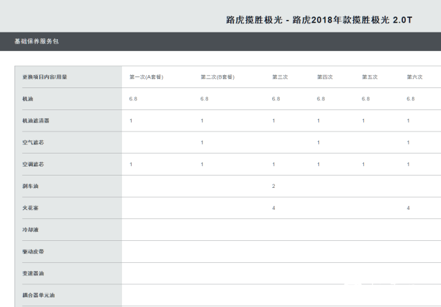 首先最直观的是我们能够在路虎官网就能看到每一款车型每一次的保养价格,像路虎极光18款的保养周期就是每年或者每1万公里保养一次,综合下来差不多6万公里的保养费用在1万2左右。