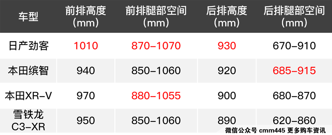 从表格中我们能看出劲客营造出同级领先的前后排高度,给予用户更多的头部空间,同时后排腿部空间也只是仅次于缤智,所以乘坐空间自然不差。