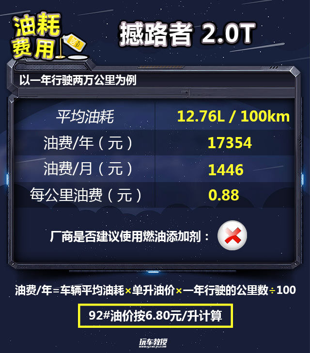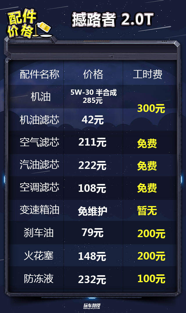 教授总结:撼路者在保养方面还是比较实惠的,相比锐界要便宜了不少,这得益于工时费和材料都相对便宜。以一年行驶两万公里为例,年花费为31211元,其中占据最多的是油费,不过考虑到车身的尺寸以及重量,这样的表现还是非常正常的。