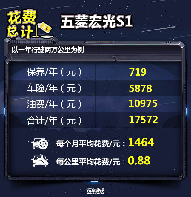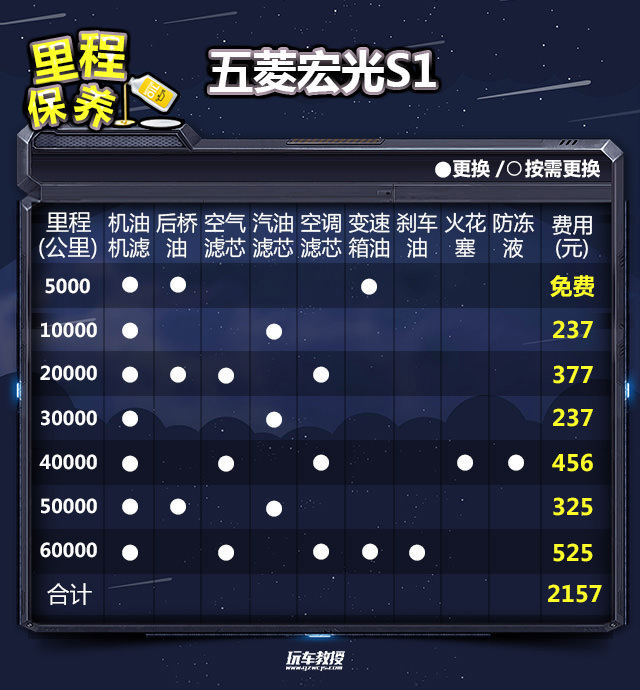 教授总结:从结果上看,五菱宏光S1的保养费用还是相当实惠的,小保养需要237元,行驶6万公里的保养总费用为2157元。以一年行驶两万公里为例,其年花费17572元,月花费1464元,养起来还是比较容易的。
