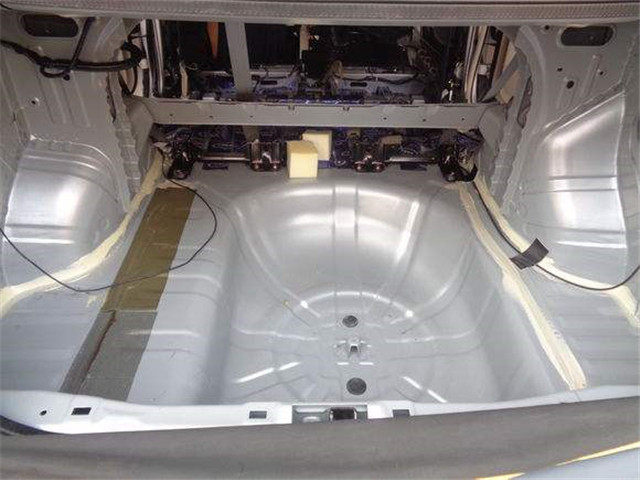 而且,在每一个面的接缝处还会有一层白胶,它们的作用首先是为了遮盖住原厂焊点,看起来更美观,还有就是为了后备箱的隔音。这些胶是由整车厂的机器人打上去的,是流畅的,美观的。