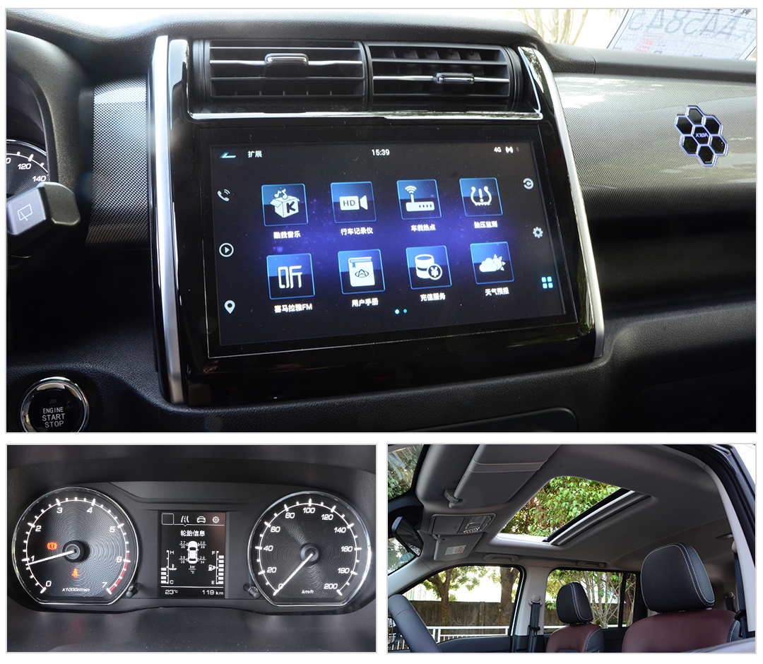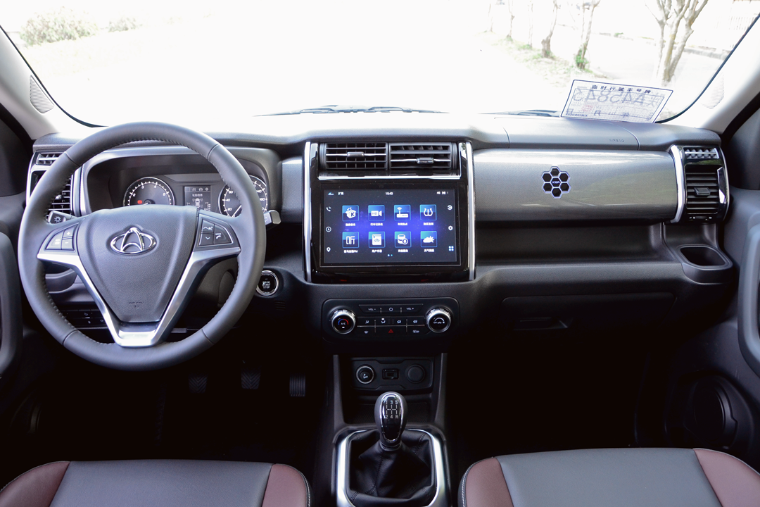 走进车内,教授的第一感觉就是:还不错!中控台造型有着强烈的层次感,做工方面也不错。内饰大部分材质都采用了硬塑料,毕竟价格摆在这里,况且它的主要竞争对手是微面、小型MPV这一类车型,如果内饰采用了较多软性材质,想必你也舍不得拿它来拉货吧?所以这点没毛病。