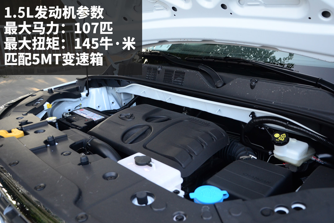既然这款长安欧尚X70A的主要对手是小型MPV、微面这一类车型,那么它除了要“能装”之外,还必须得“拉得动”。这次我们试驾的车型搭载了1.5L发动机+5MT变速箱,采用后轮驱动的方式,未来还会推出搭载1.3T发动机的车型。
