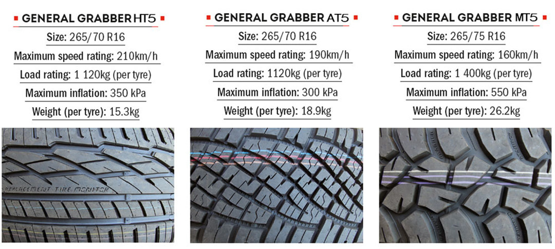 将军轮胎的三款SUV/越野车轮胎均有较强的针对性。从名字就得知三款车胎分别是俗称的HT、AT、MT胎,它们分别代表高速铺装路面、全地形、泥地三种使用取向。GRABBER HT5专注于铺装道路行驶,并能应付一定的越野道路行驶,适用于大部分城市SUV;GRABBER AT5则加强了越野能力,在越野能力和铺装道路行驶上获得平衡;GRABBER MT5则是高性能越野轮胎,能够针对极限越野提供更高的轮胎性能,更能应付越野比赛,是硬核越野车爱好者的首选。