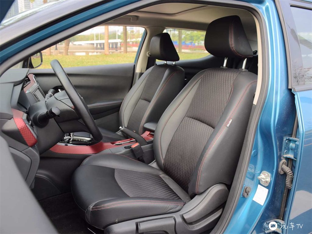 在座椅方面完全不用有任何担心,整体配色看起来很符合年轻运动风格。但实际乘坐感受却以舒适为主,两侧包裹不会太过压迫,坐垫也比较长,给人感觉很放松。果然日产大沙发。