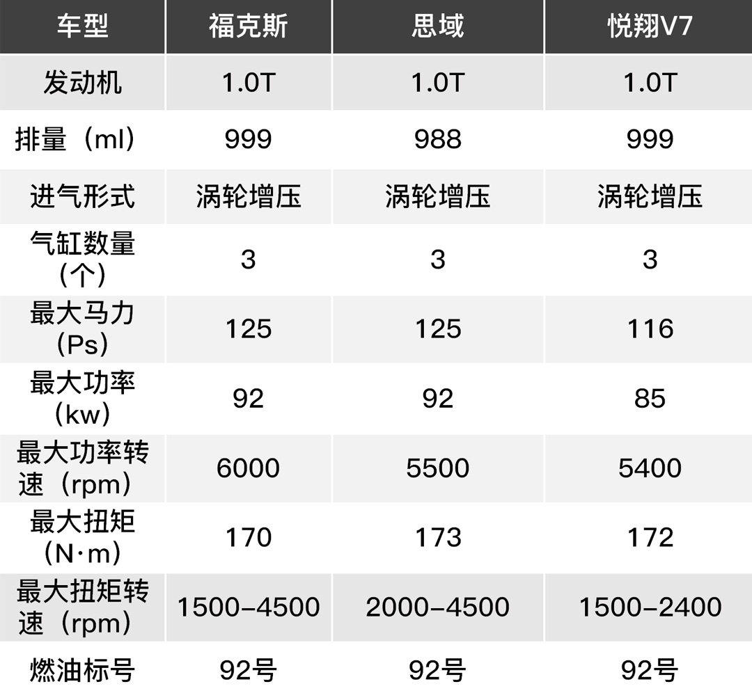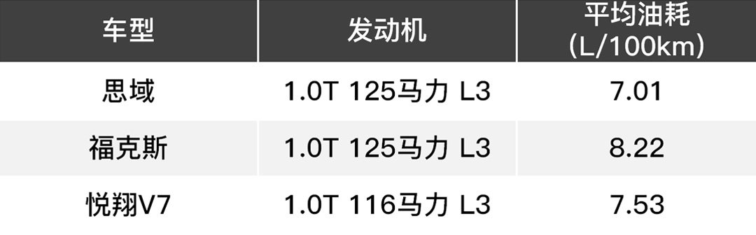 但是目前英朗的1.0T车型的油耗数据还没有出来,所以我们1.0T的车型对比就选择了福克斯、思域以及悦翔V7三款车进行对比。