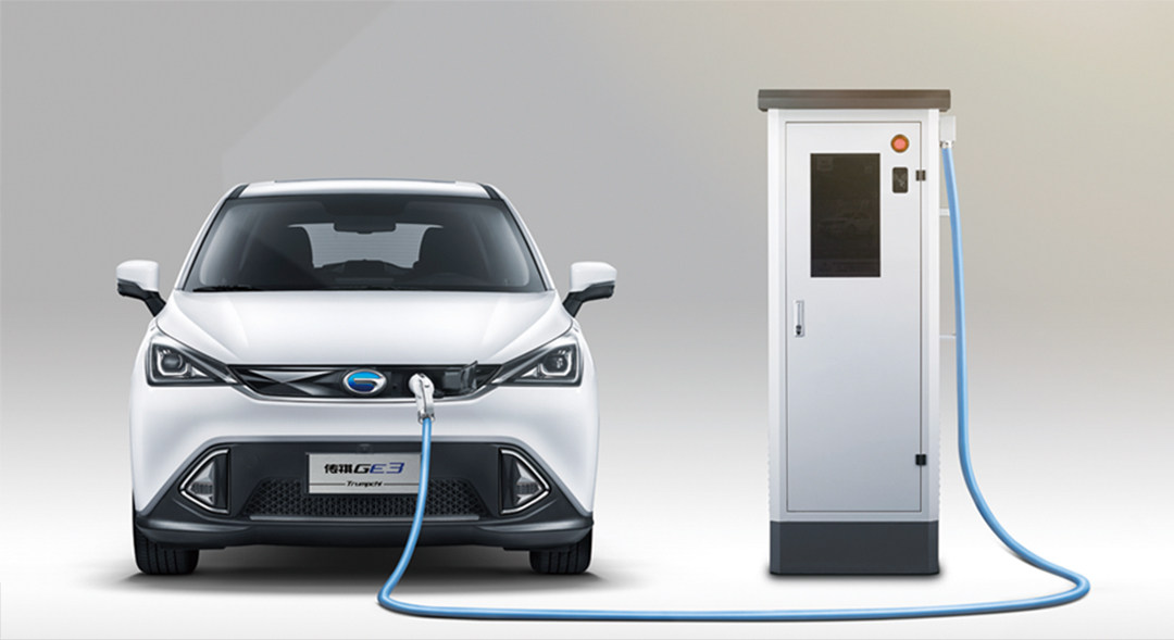 传祺GE3是以广汽传祺全新的电动车平台打造,最近比较热门小型SUV传祺GS3的平台就是基于GE3的平台打造的。GE3前脸采用最新的“Low Poly(低多边形)”设计语言,视觉感受还是比较不错的,挺时尚,而快充接口则位于前格栅logo旁边。