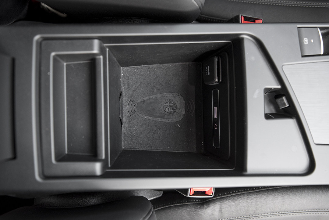 为了营造运动化的内饰,Giulia也牺牲了不少车内储物空间,手套箱和中央扶手储物格的空间相当有限。