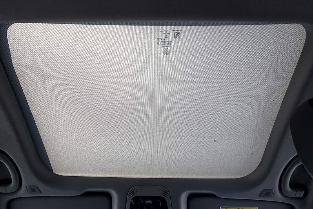 Giulia的全景天窗分为前后两部分,位于前排的天窗遮阳帘为电动开启,可惜在这台Giulia 280HP豪华版上,天窗遮阳帘和天窗一样出现了故障无法开启。