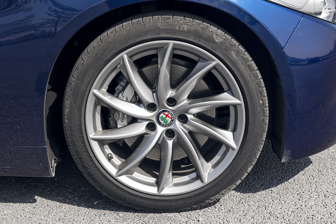 当我们对这个测试结果感到疑惑之时,无意的低头一撇却揭示了问题所在:轮胎。作为一款拥有280匹马力、400牛米扭矩的运动型轿车,阿尔法罗密欧Giulia 280HP豪华版配备的是来自倍耐力的Cinturato P7轮胎,一款四季通用的全天候轮胎。