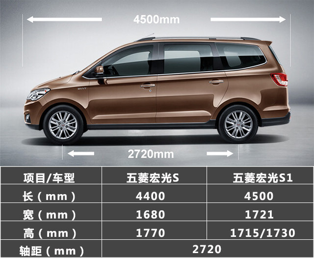 五菱宏光S1可以说是五菱宏光S的升级精致版。宏光S1比宏光S长了100mm,宽了41mm,矮了55mm到40mm,看起来更加修长。它们两个轴距一致,在整体设计上是相似的,但在一些细节上的设计有区别,想了解的小伙伴可以在玩车教授小程序查看我们的图库哦,也可以直接去4S店里体验,这里就不在赘述了。