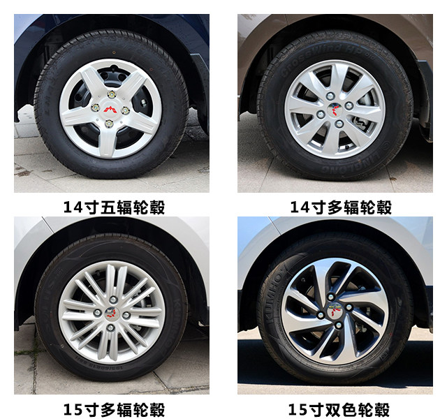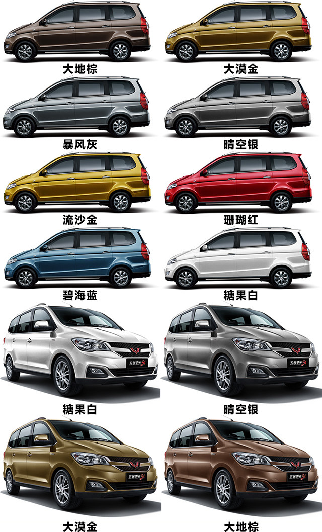 五菱宏光S提供了8种车身颜色可以选择,满足广大群众的各种口味。宏光S1就没那么多奇特的颜色了,缩减到4种颜色可以选择。轮毂方面,宏光S的两款基本型车型使用的是14寸的五辐铁制轮毂,标准版和新舒适版使用的是14寸的多辐铝合金轮毂。宏光S1的标准型和舒适型车型使用的是15寸的多辐铝合金轮毂,顶配的尊享型使用的则是最漂亮的15寸双色铝合金轮毂。