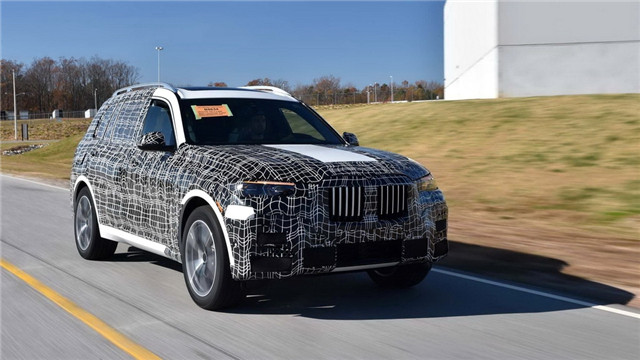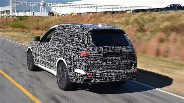 所以想必大家也很好奇,这样一款看似用力过猛的X7概念车,它的实车会长什么样呢?日前这个谜底就揭晓了,宝马非常慷慨地放出了一组新车在美国工厂试生产的官方预告图,并且从中可看出车身上还覆盖有扫描线,以便为最后的造型修改留出空间。
