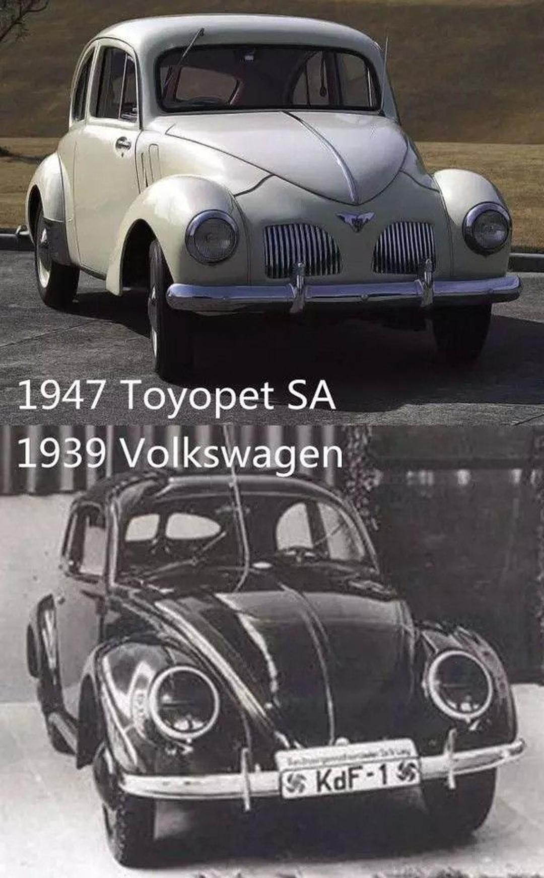 丰田目前贵为世界第一厂商,创立于1937年,在1947年推出的Toyopet SA就抄袭了1939年出的一款大众车。