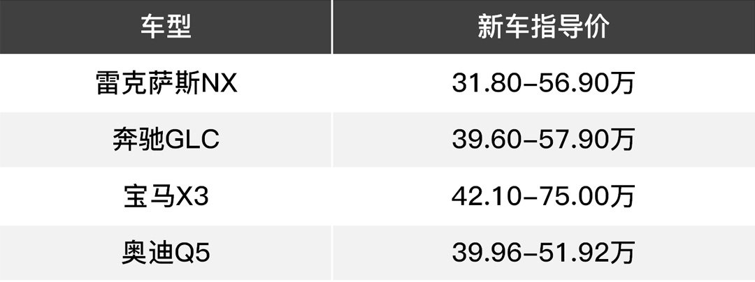 1、那么作为一款小众品牌的豪华SUV的好处就是,只需要不到32万的起售价格,相反奥迪Q5、奔驰GLC、宝马X3的起售价都在39万以上,更关键的是雷克萨斯NX属于进口车型。