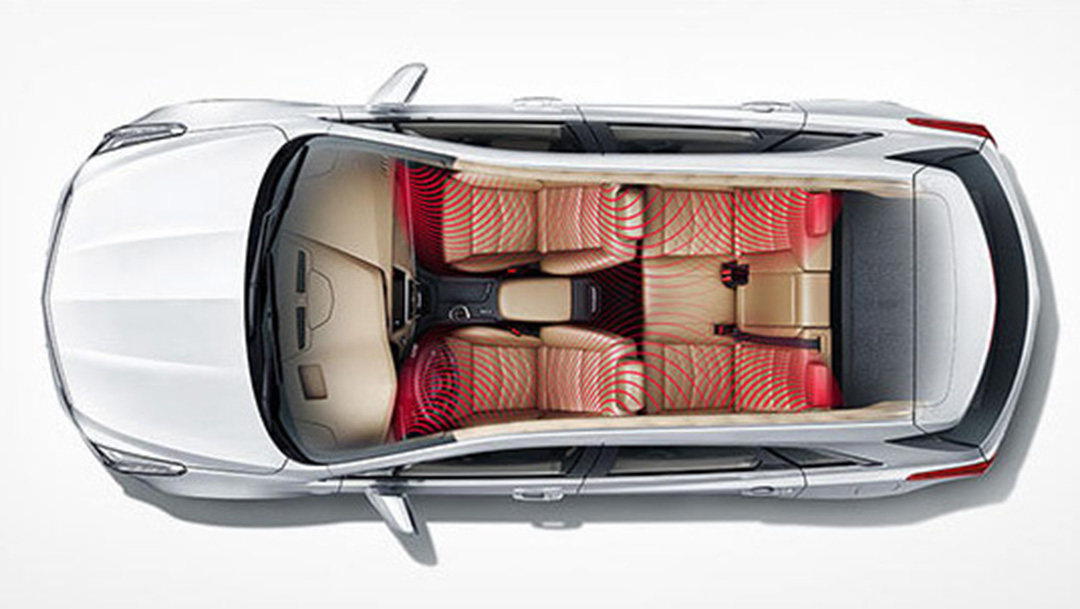 4、根据较多的车主反馈,这款中型SUV的乘坐空间比较宽裕、座椅舒适度以及车内隔音效果都非常不错。那么在这么安静的车内环境之下,为凯迪拉克XT5专门打造的Bose环绕音响就能让车内的乘客尽情地享受了。
