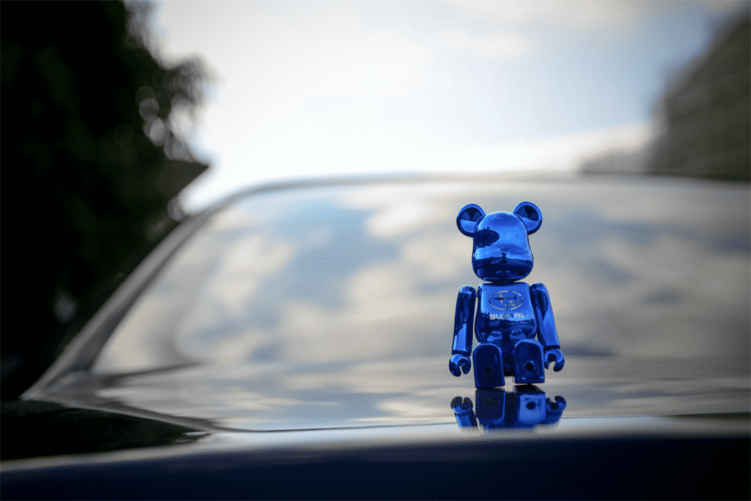 比较有意思的是,广广车上有一只限量版的积木熊,是它的一位好友从日本带回来给他的,上面还有一个斯巴鲁的Logo。