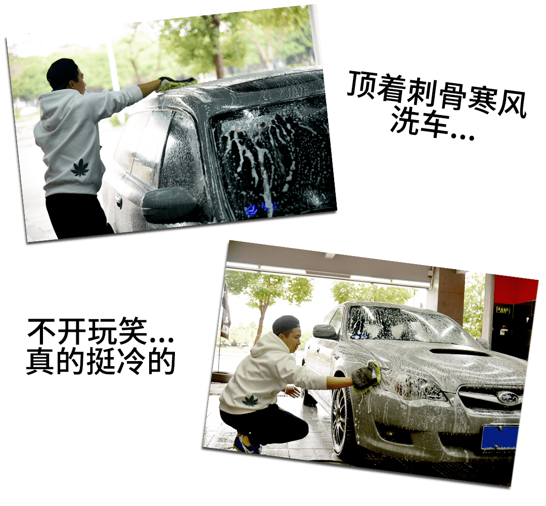 对于身在北方的同志来说,广州7-14°的气温也许不算冷,但别忘了南方的冷是“湿冷”,而且在这个气温下还吹起北风,那是一种刺骨的冷。嗯!拍摄当天就是这种天气,可是车主阿豪依然卷起衣袖,亲自动手洗车,靠的完全是“真爱”。