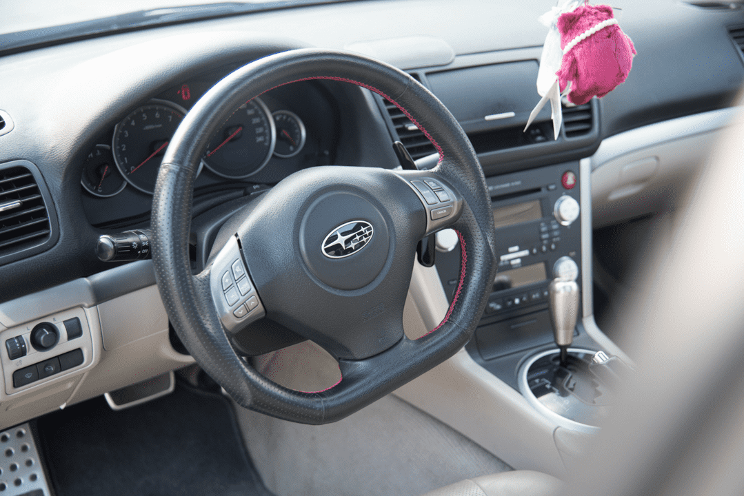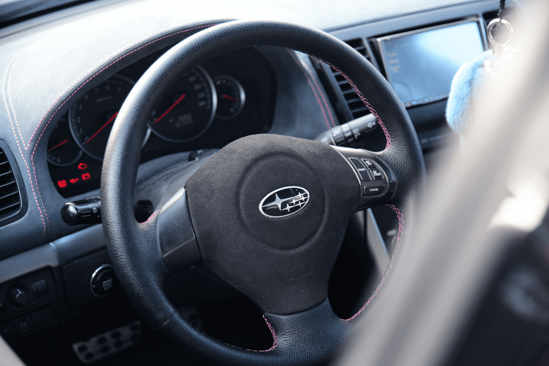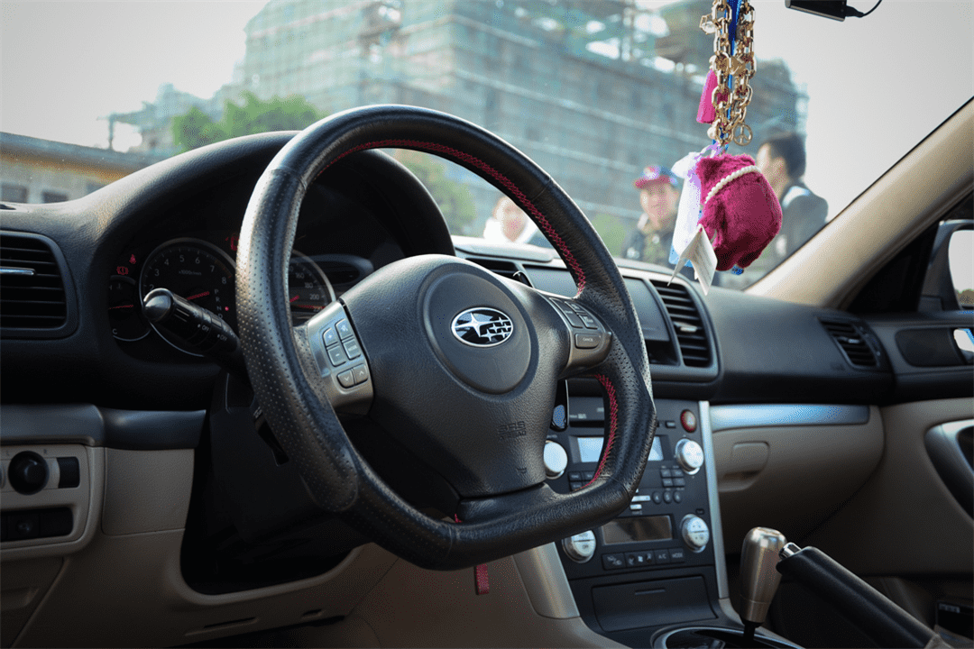 不过,在驾驶座车里挂着一个“车手证”,换装了一个象征着“运动”的平底方向盘,挡杆上还有STI的Logo!这时,我仿佛读懂了阿聪的心思...