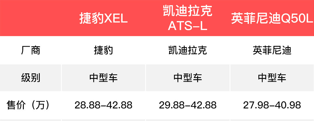 先不论BBA,目前二线豪华品牌中已经有不少的中型车国产化已有不短的时间,它们在国内拥有更广的知名度。例如英菲尼迪Q50L、凯迪拉克ATS-L就是全新XEL难以躲开的对手。相较于前两者,XEL有何优势呢,不然更枉论打败BBA了。