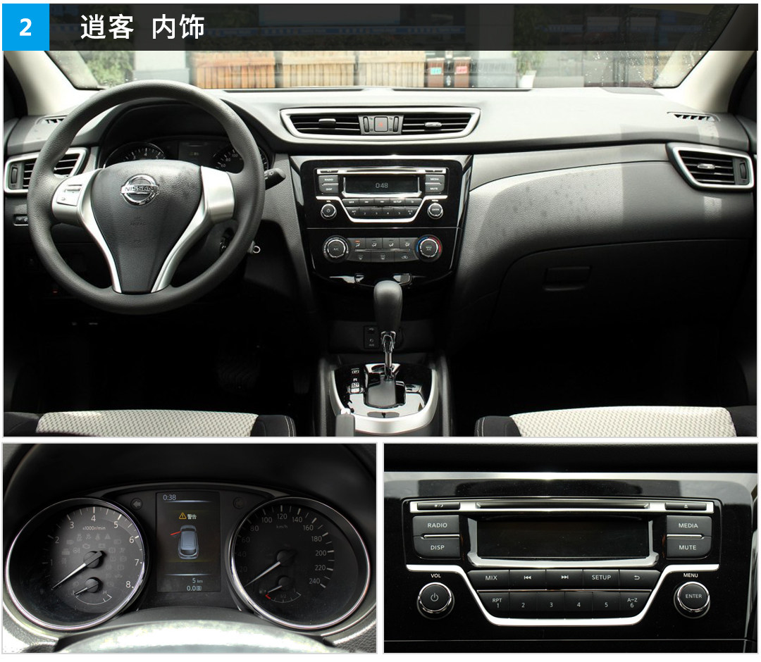 现款逍客的内饰就显得比较老气,只有个别配置才有中控彩色屏幕,整个中控台中央位置用了大面积的钢琴漆面,虽然几乎都是使用传统按键,可是整合感非常好,一定都不会觉得乱,整体感觉是以简洁为主。