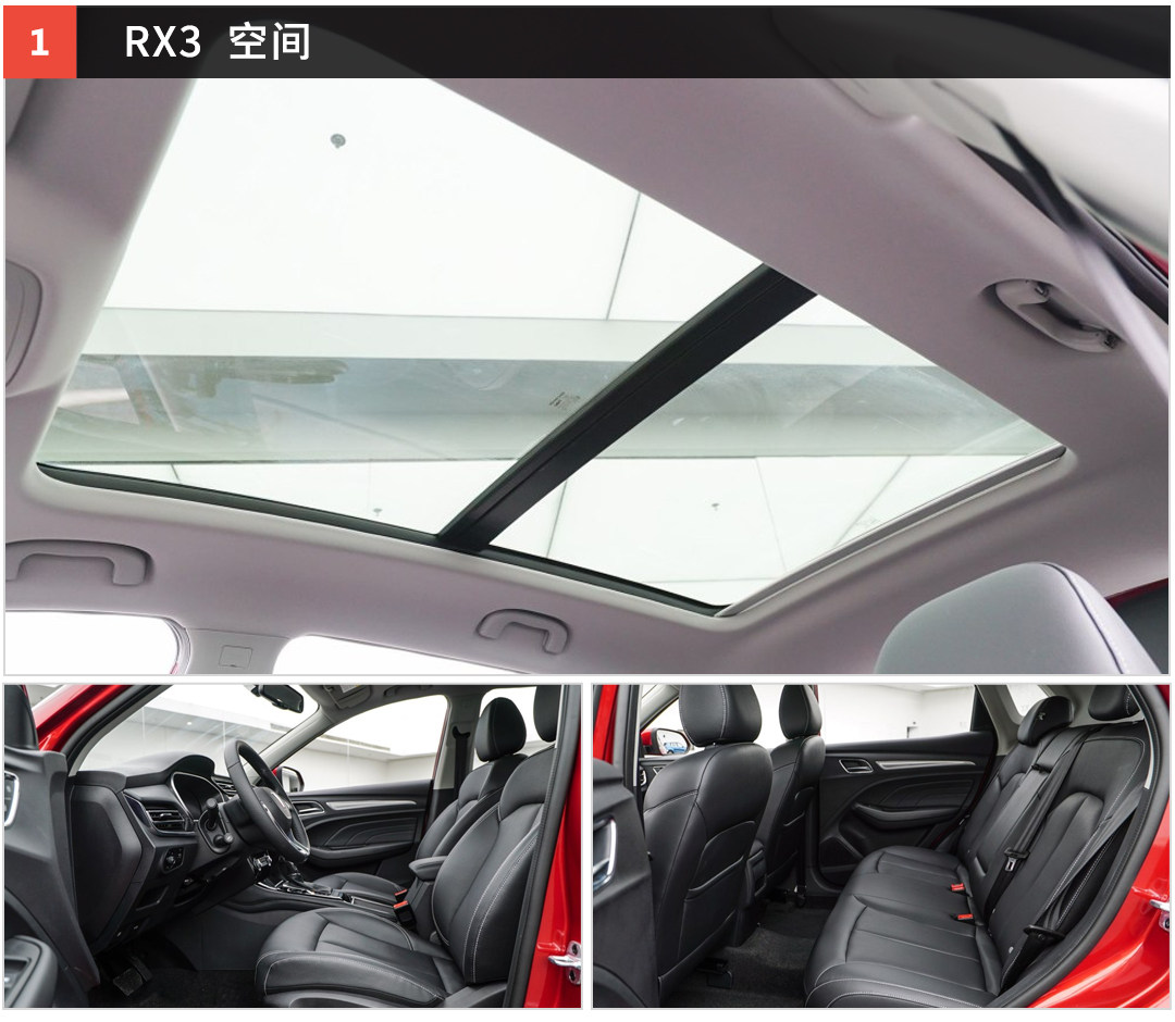 RX3的座椅包裹性是做得比较好的方面,软硬度适中,180cm的试乘员,前排座椅调至最低位置,保持舒适坐姿,头部空间为四指左右,保持前排坐姿,坐进后排,头部空间为大概为一两指之间,腿部空间为一拳四指,表现不错,再加上同级车型中尺寸数一数二的全景天窗(只有最低配没有),使得车内空间感非常好。