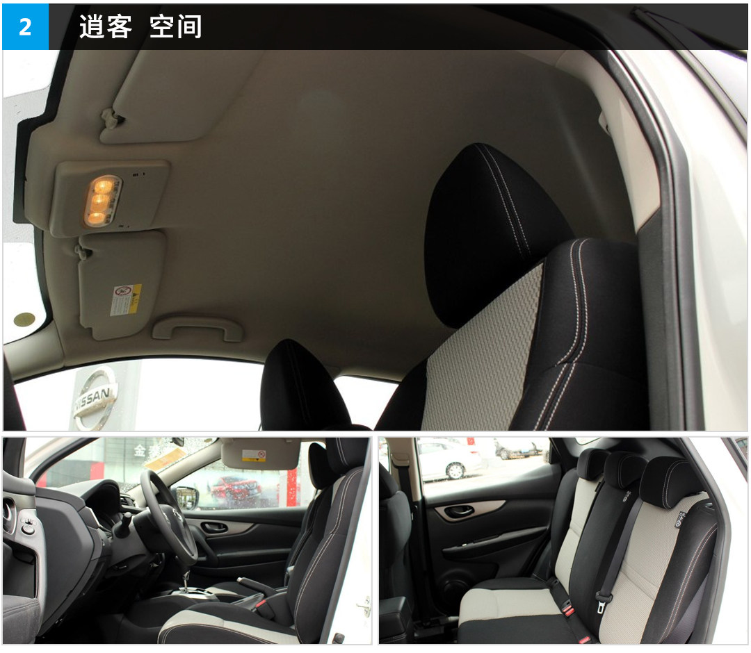 逍客的座椅材质是织物的(顶配才是皮质的),座椅的填充物很软,承托感比较一般。同样是180cm的试乘员,前排座椅调至最低位置,保持舒适坐姿,头部空间为一拳,保持前排坐姿,坐进后排,头部空间为大概为四指,腿部空间为一拳,前后排的头部空间相对RX3好一点点,不过后排腿部空间就明显不如RX3。