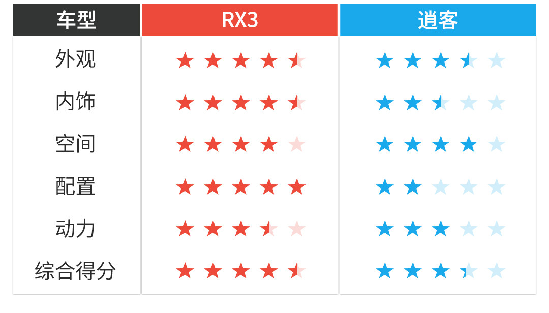 通过选择动力与指导价相对接近的车型对比后,RX3的确是外在与内在并存的车型,预计一段时间后,销量会不错。