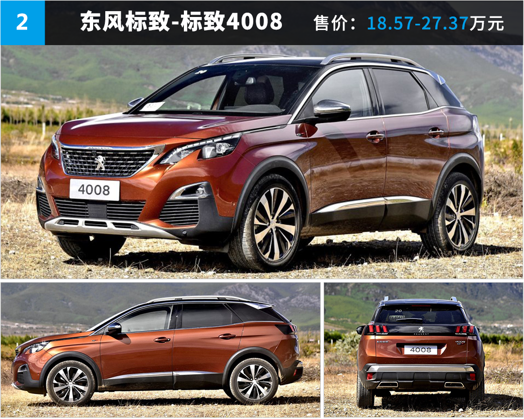 4008的前脸远远看去辨识度颇高,内凹式的中网配以繁星般的矩形饰条,科幻感十足。分叉式的大灯设计就像一组獠牙一样,颇为凶悍。而雾灯处的半开放式镀铬装饰条较好地起到了画龙点睛的作用,整体的设计令人印象深刻。