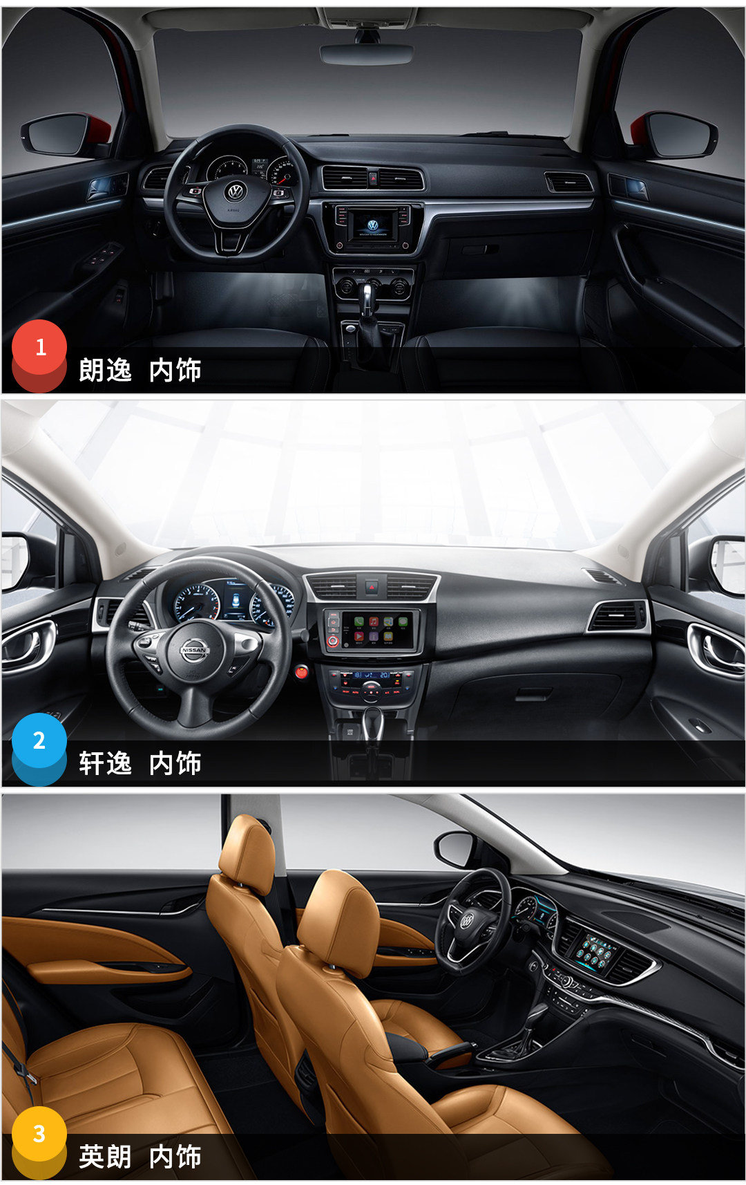在尺寸方面,轩逸除了宽度以外其余数据都是处于领先状态,英朗则是在宽度上略占上风,而朗逸表现平平,那么实际体验如何呢?让我们一一揭晓。