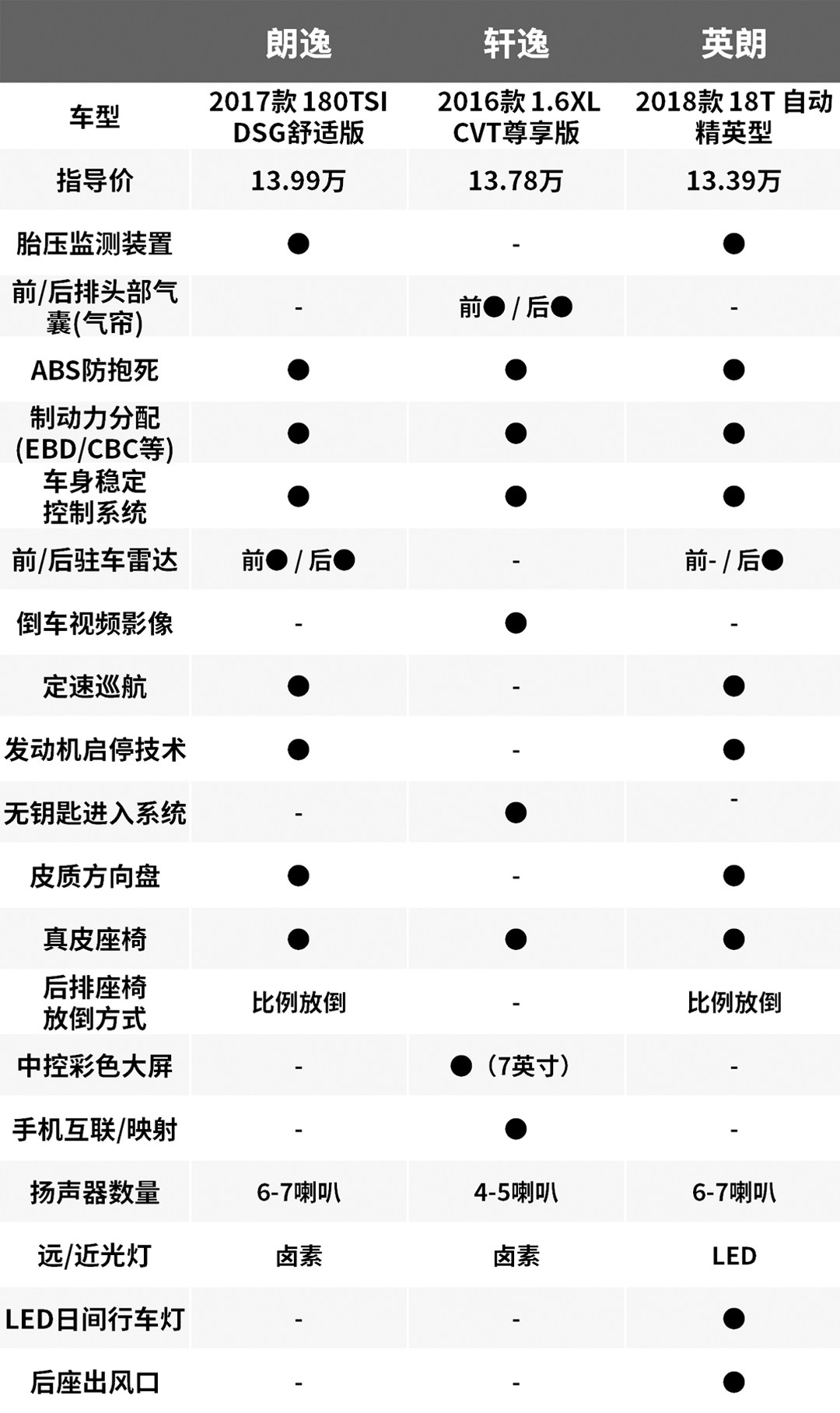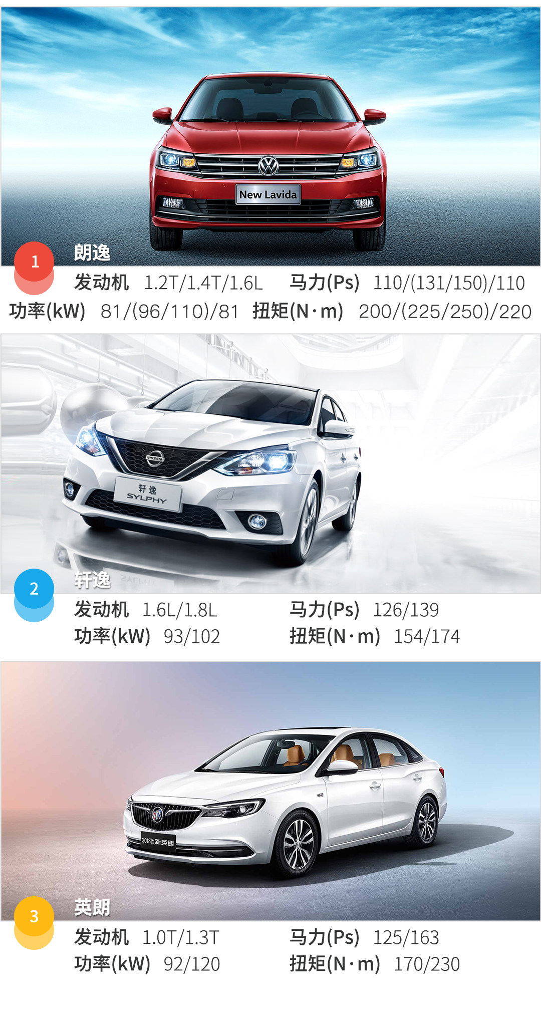 做为销量前三的选手,三车各自都有不同的应对人群,朗逸本身并没有啥特点,但是以其沉稳中庸的风格能够满足更多不同年龄段的消费者。轩逸做为销量的常胜将军,空间和乘坐舒适度是其最大杀器,很好地满足了许多消费者的家用需求。而英朗的外观内饰以超越同级的豪华气息征服了许多消费者,再加上新老同堂销售,产品线自然更加广泛,夺得第三的宝座也不足为奇。总之,如果在三车中纠结的朋友们,根据以上各车的特性再结合自己的需求选就OK啦~