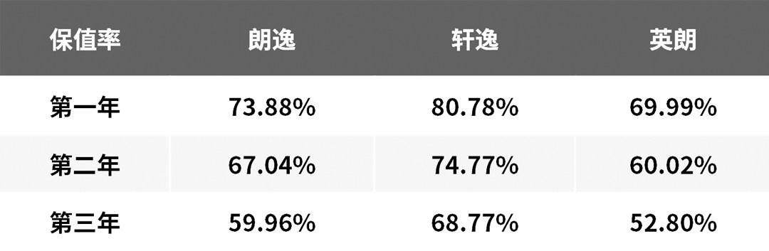 接下来为三车的保值率对比,各地二手车市场行情不同,仅供参考。
