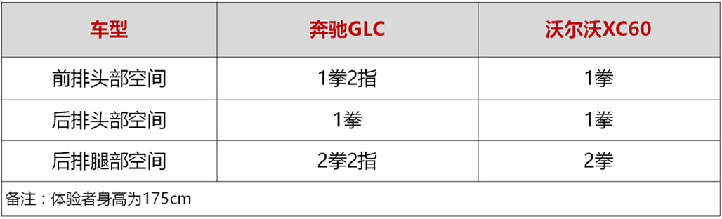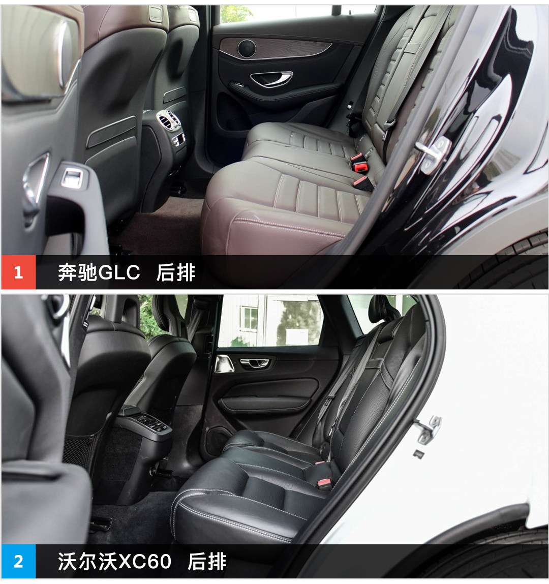 两车的空间表现都很出色,尺寸上的差距也直接体现在空间表现上,奔驰GLC的头部空间和腿部空间都相对更出色一点,沃尔沃XC60虽然没有加长轴距,但腿部空间受到的影响也不算很明显,只是比奔驰GLC的表现差了一点,而地板中央凸起的部分,沃尔沃XC60也比奔驰GLC凸起得更高,舒适性方面相对更差。