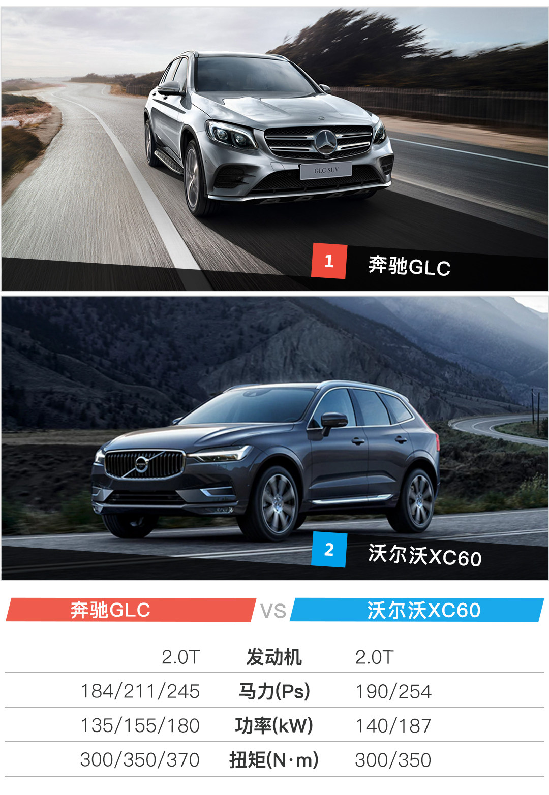 从比较的结果来看,在外观和内饰上两车可以说是风格各异,在空间和配置方面奔驰GLC有稍占优势,沃尔沃XC60则在动力方面表现得更出色,不过整体的差距其实都不大,表现都很出色,选哪款都不会错,奔驰GLC无疑有着更强的品牌号召力,沃尔沃XC60属于这个市场的后起之秀,但价格更亲民,性价比高,是更务实的选择。