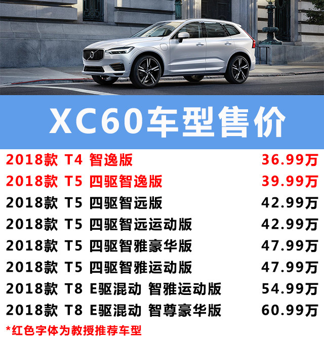 新一代XC60总共有8款车型,售价区间从36.99万到60.99万,看起来好像有点小贵,但是整体配置十分给力,所以入门车型的性价比就很高,推荐购买入门的两款车型即可。