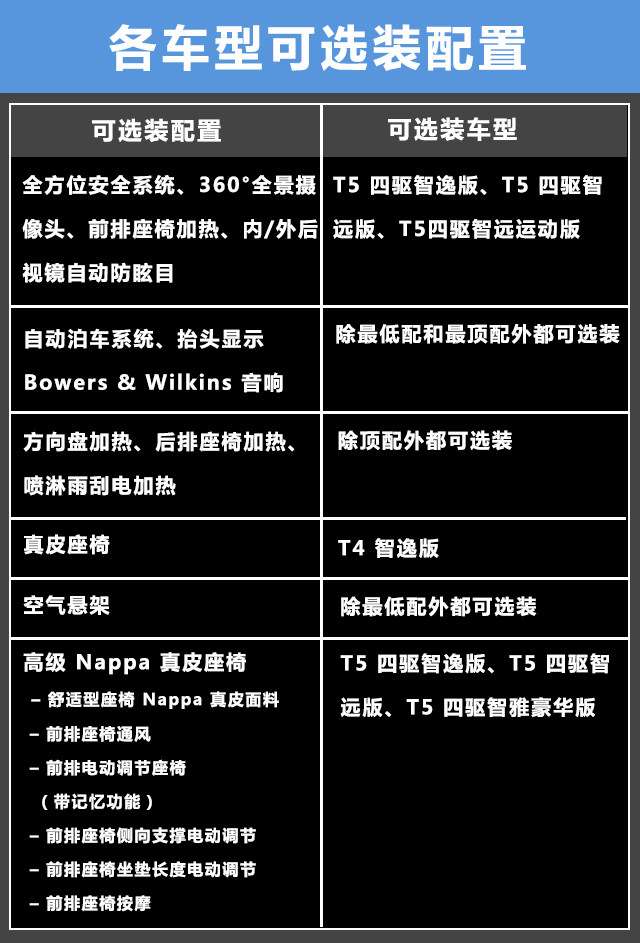 除了每个车型的自身的配置,沃尔沃还提供了很丰富的选装配置,客户可以按需选择。下面进入正题。