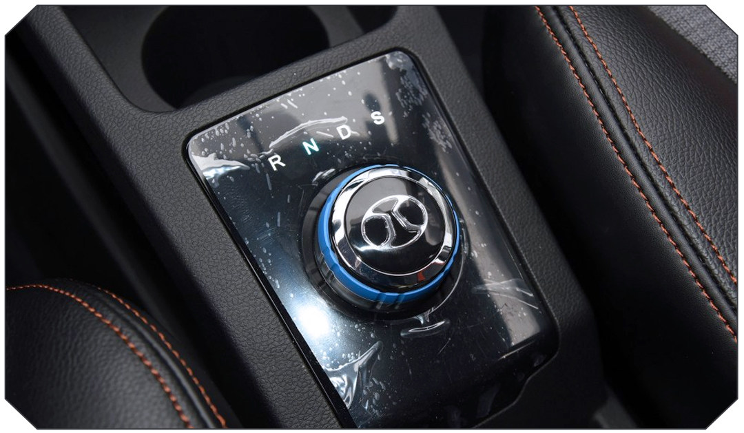 传动系统为电动车单速变速箱,旋钮式换挡的设计,挡位很清晰,手感也不错。