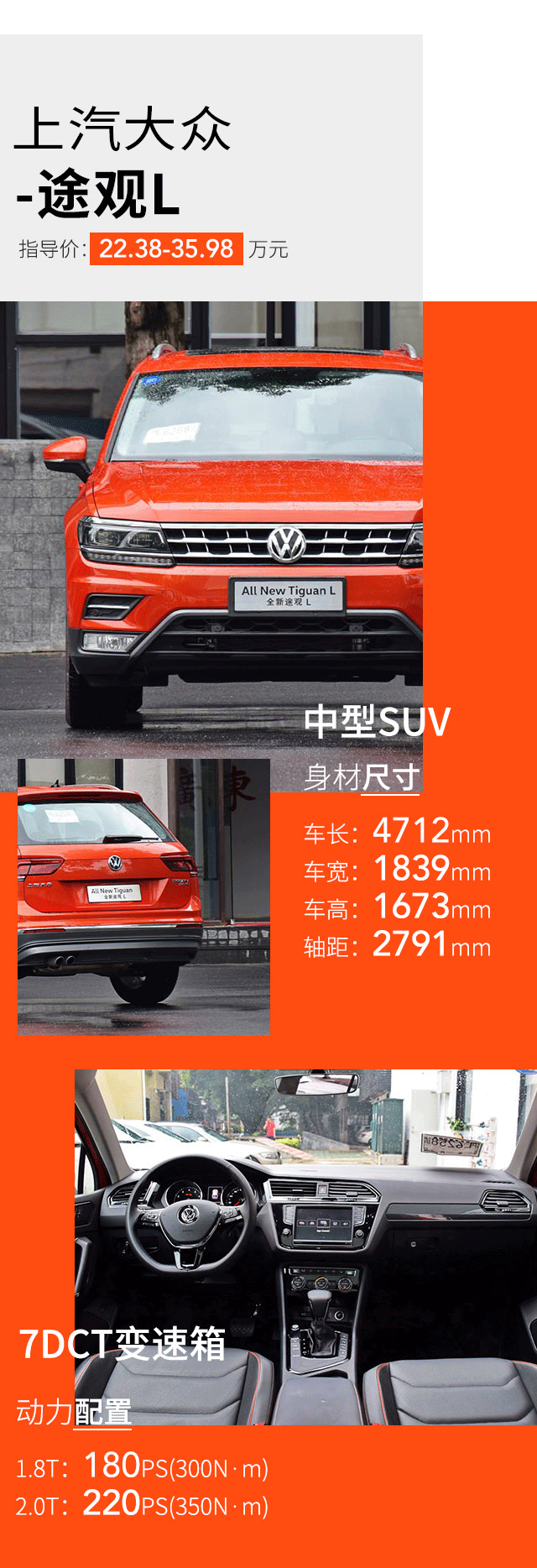 写在最后:途观L这款车型在今年的前11个月的累计销量已达17.48万辆,现在的月销量维持在2万辆以上,其中卖得最多的是1.8T车型,如果你对途观L这款车有感觉、有看法的话,就马上在文章开头的投票区域给它评个分吧!